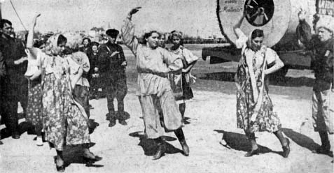 Neither the countryside nor the villages were protected from demonstrations (center). The purposes of the Yids, which are pretty obviously symbolized by the picture to the left, first of all apply to the subordination of the largest mass of the nation to the influence of their misleading and false ideas. For the achievement of this goal their propagandizing reached the limits of an unbelievable exaggeration: in the front of the demonstrations special dance groups were going, but ... |