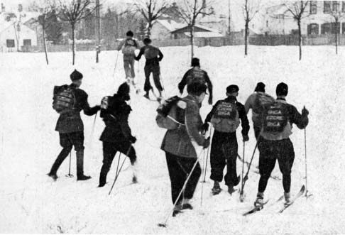 | Skiers on propagandizing trip for the elections. |