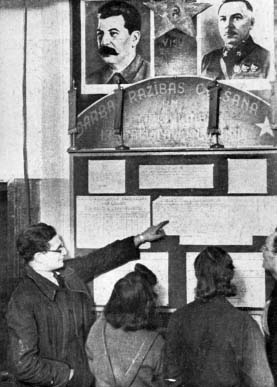The walls of factories and enterprises were decorated with many mysterious schedules and plans. The Latvian worker was working, a Yid - the manager of an enterprise was watching that he fulfills the quota. When after work the bored and overtired worker, according to all the ideas of propaganda, was invited by ... the red corner, but certainly nobody went there. This place for glorifying Stalin and party became the butt of caustic remarks and cause for innumerable jokes. |